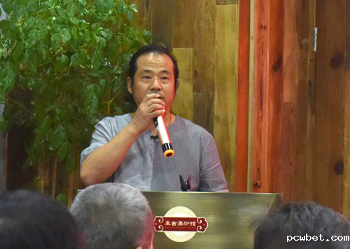 上海市海上兰亭书法院副院长、参展艺术家张培基发表感言。张老师说此次展览有“四名”:一,名字好,“兰亭韵·秦古风”雅拙并蓄,有文化内涵。二,名家多,江浙两地书法名家群贤毕至、云集秦古,颇有些华山论剑的味道。三,名气大,随着秦古美术馆的影响力越来越大,艺术氛围越来越浓,展览格调也越来越高。感谢秦古营造的浓郁传统国学与传统文化的艺术氛围,艺术名家在此举办展览实至名归。四,名诗多,展览作品囊括毛泽东著名诗词,气壮山河,亦汇集历代名人诗歌,内涵丰富。在主题上,展览突出了迎接新中国成立七十周年的主题,充分反映我们艺术家们热爱祖国、心向祖国的心声。