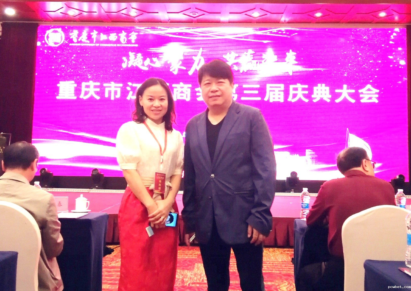9月16日,重庆市江西商会在重庆市君豪大饭店隆重举行第三届换届大会及以“凝心聚力、共赢未来”为主题的晚宴庆典活动,我会常务副会长桂建平、副秘书长吴丽琴代表商会出席祝贺。