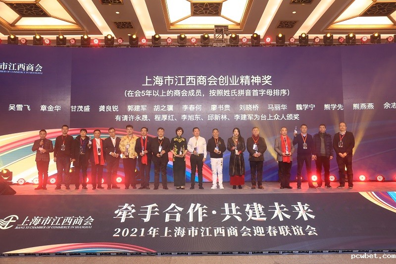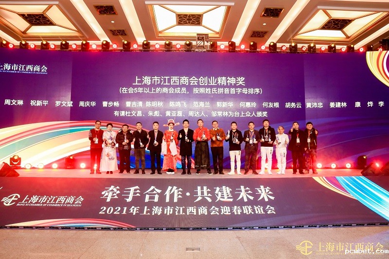江西省人民政府驻上海办事处杜文昌处长、黄亚磊副处长,江西各地市驻沪联络处许永晟主任、程厚红主任、李旭东主任、邱新木主任、朱江萍主任、戴冬英主任、丁一主任、江丽红主任、张晓凌主任、周达人主任、朱彪主任、詹晓勇副主任,崇明人大常务副主任、工商联顾德昌主席,金砖银行邬建军首席专员等为在会5年以上的商会成员匡省平、兰云科、吴雪飞、章金华、甘茂盛、龚良锐、郭建军、胡之骥、李春何、廖书贵、刘晓桥、马丽华、魏学宁、熊学先、熊燕燕、余志华、张水青、周雨茂、周玉建、元细根、傅佩琴、罗智敏、邹小龙、陈华建、林巍、刘忠友、谭杰锋、万显耀、王建华、王建平、熊传金、杨晨光、杨贤皇、余志农、郑军、郑贵淼、周小川、周文琳、祝新平、罗文斌、周庆华、曹步畅、曹吉清、陈明秋、陈鸣飞、范海兰、郭新华、何惠玲、何友根、胡务云、黄沛忠、姜建林、康烨、李唯、李志勇、梁欣怡、林接旺、刘树、刘秀玉、梅永平、潘成云、邱泉良、孙杰、孙文、汪诗敏、吴民平、吴意明、伍方朕、徐志军、张小菊、曾常清、曾艳华颁发必威betawy中文版创业精神奖。