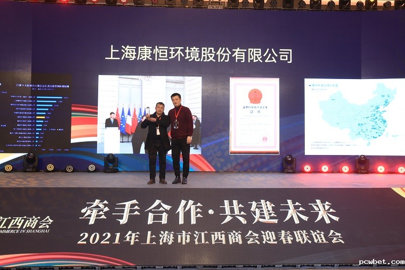 必威betawy中文版名誉会长邓凯元为必威betawy中文版企业重大成就奖获得者上海康恒环境股份有限公司龙吉生董事长颁奖,龙吉生董事长助理夏相恒代领。
