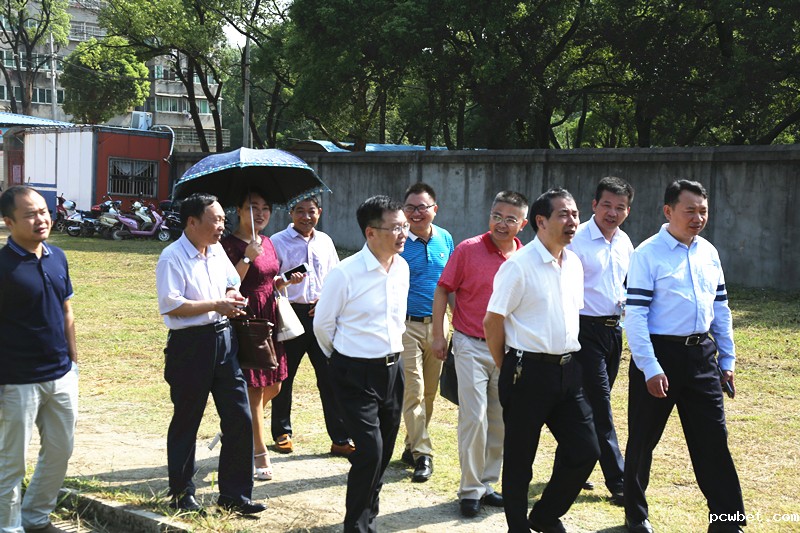 (程芳姜久思和新建县有关单位领导走访新建三中校园)