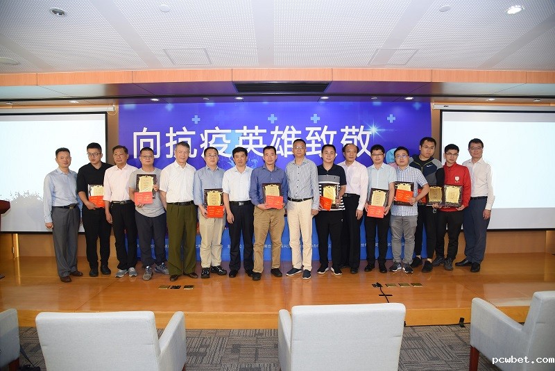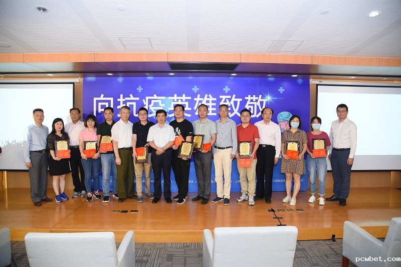 江西省政府驻上海办事处党组书记、主任吴井勇,必威betawy中文版执行会长杜桂华,上海慈善基金会副理事长施南昌,上海振兴江西促进会党支部书记陈国梁,必威betawy中文版党支部书记蒋以新,医疗界代表彭亚军教授,上海全景医学影像科技股份有限公司总裁居培明向抗疫英雄颁发纪念牌及慰问金。