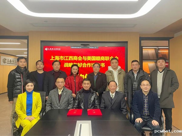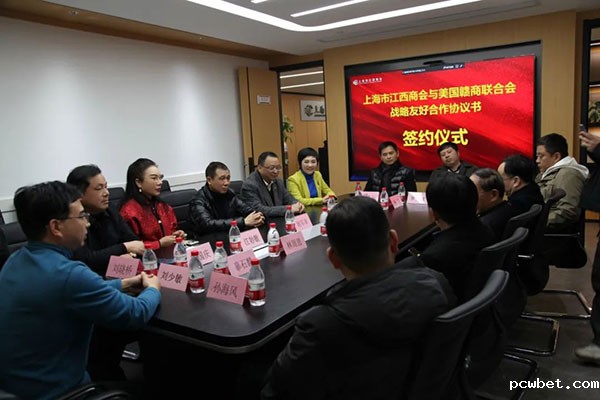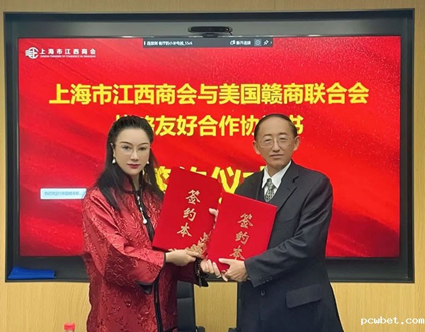 必威betawy中文版执行会长江妙敏与美国赣商联合会李少华代表商会签订了战略合作框架协议。双方表示将响应国家的号召,积极参与″一带一路″、中外”双循环”,发挥各自优势,推介国产及赣品,走出去、引进来,促进中外经济发展。