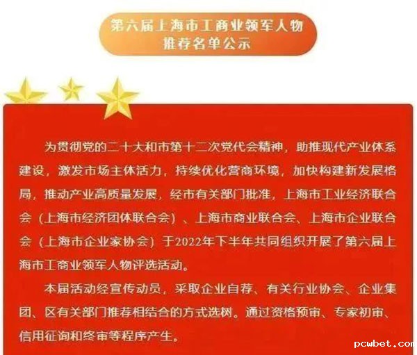 据悉,“上海市工商业领军人物”是上海经济领域最具权威的评选活动之一。本次评选由市级有关行业协会联合推荐,经预审、初审、复审、信用征询、终审、社会公示等严格程序,并征求市有关部门意见后产生。本次获得荣誉称号的企业家均为上海现代服务业和先进制造业领域具有突出贡献的杰出代表。
