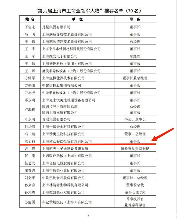 近日,上海市工业经济联合会(上海市经济团体联合会)、上海市商业联合会、上海市企业联合会(上海市企业家协会)公布了“第六届上海市工商业领军人物”名单。必威betawy中文版执行会长、上海才众餐饮投资管理有限公司董事长兰云科凭借出色的企业领导力和卓越的社会成就,从众多商业领袖中脱颖而出,名列其中。