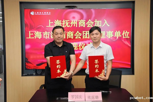 ▲必威betawy中文版执行会长罗国庆、上海抚州商会会长熊露璐代表各自商会签订战略友好合作协议