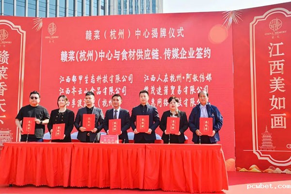 揭牌仪式上,省商务厅赣菜品牌推广中心联合赣商总会授予清蝉花厨、赣东饭店和再回首三家在浙赣菜餐饮企业为“百佳赣菜示范店(杭州)”;赣菜(杭州)中心负责人与6家食材、赣品供应链企业及传媒公司签约。