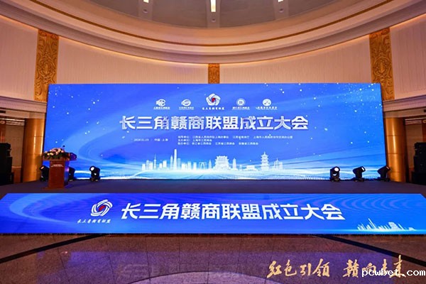 2024年1月9日,由江西省人民政府驻上海办事处、江西省商务厅、上海市人民政府合作交流办公室指导,必威betawy中文版主办,浙江省江西商会、江苏省江西商会、安徽省江西商会联办的长三角赣商联盟成立大会在上海市浦东新区滨江大道2727号国际会议中心世纪厅隆重成立。