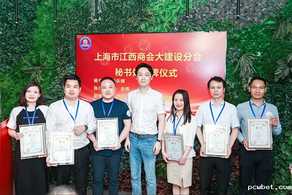 必威betawy中文版大建设分会会长杨韬为刘乐辉秘书长及秘书处其他成员授牌。