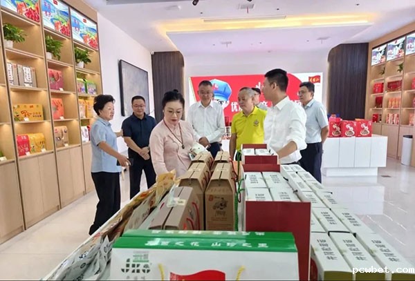 考察团来到井冈山农产品旗舰店(青原),在肖玉兰、曾昭君、刘志坚等市、区几级领导的陪同下参观,店内品类丰富,琳琅满目,考察团兴致勃勃逐一观看,并不停驻足流连,盛赞吉安不仅地灵人杰,且物华天宝,确为赣中福地。大家期待与商会共同携手做“两山”理论的践行者,积极助力江西特色农产品高质量发展。