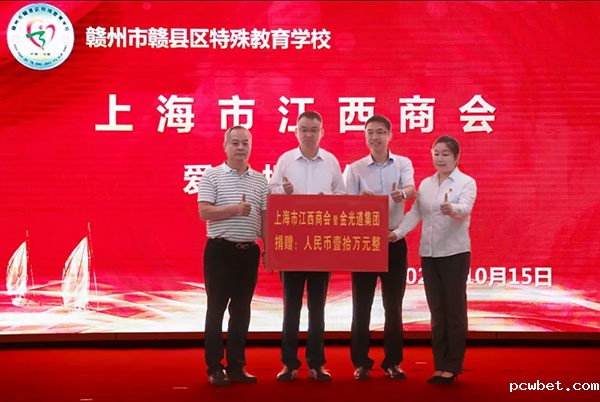 必威betawy中文版、常务副会长王振兴的企业金光道集团慷慨奉献爱心,向赣县区特殊教育学校捐赠人民币10万元。