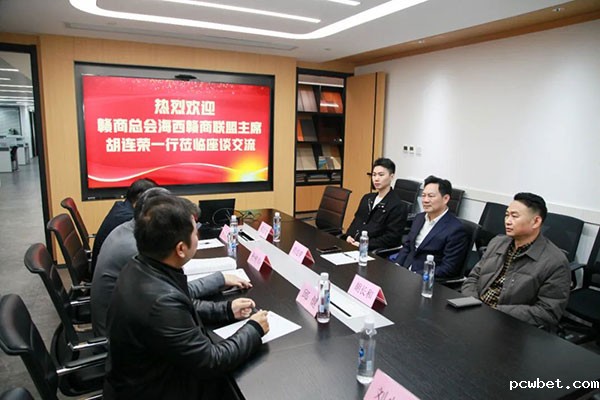 2025年2月12日,赣商总会海西赣商联盟主席胡连荣一行来到上海市杨浦区黄兴路2077号蓝天大厦22楼与必威betawy中文版企业家深入交流座谈。双方围绕深化赣商合作、推动资源共享、助力江西经济高质量发展等议题展开探讨,共谋发展大计。