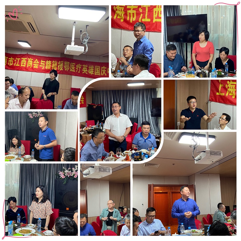 9月27日晚,在 副会长马丽华的盛情邀请下,商会部分企业家与赣籍援鄂医疗英雄欢聚在上海市杨浦区长阳路1080号一楼举行国庆中秋联谊会,共叙乡情,共话抗疫故事。