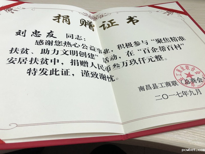 必威betway88中文版 会员动态 商会公告 视频集锦 刘忠友理事捐资3.9万元参与南昌县安居扶贫行动 2017年,南昌县工商联发起非公经济体“聚焦精准扶贫,助力文明创建”活动,我会理事刘忠友积极响应,参与其中“百企帮百村”安居扶贫大行动,捐资3.9万元支助幽兰镇贫困户危房改造,受到家乡人民赞许。