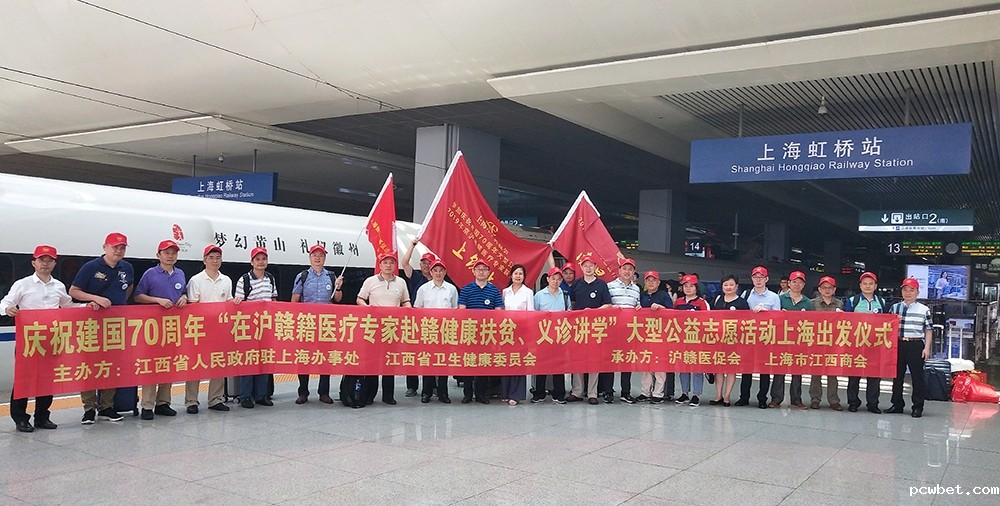 2019年9月14日至15日,京沪粤150多位(赣籍)医疗专家在江西南昌、萍乡、赣州、上饶、吉安五市同时举办“传承红色基因 助力健康扶贫——京沪粤(赣籍)医疗专家走进江西联合义诊讲学大型公益活动”。我会作为承办方之一,为上海50多位专家提供往返交通资费,派出副会长以上领导和企业家随行全方位服务,向新中国70周年盛典献礼。
