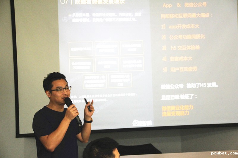 (图三、新余籍企业家、上海蜜客信息技术有限公司创始人廖文波介绍项目《微妙小程序,开启微信新生态》)