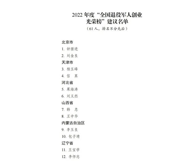 执行副会长兰云科入选为2022年度“全国退役军人创业光荣榜”