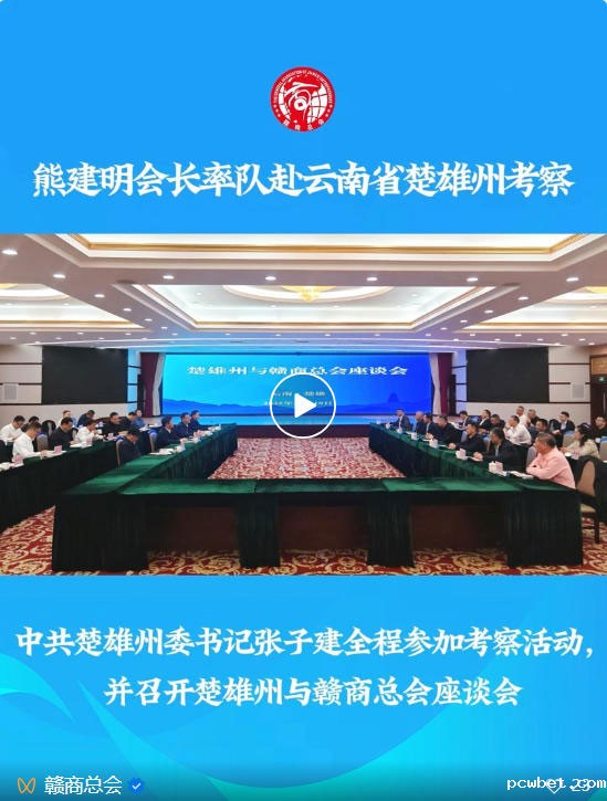 2025年10月19日,全国人大代表、赣商总会会长熊建明率队赴云南省楚雄州投资考察,中共楚雄州委书记张子建全程参加考察活动,并召开楚雄州与赣商总会座谈会。会议由中共楚雄州委副书记、州长罗景锋主持,中共楚雄州委常委、常务副州长李勇参加,副州长彭玮作了招商推介。