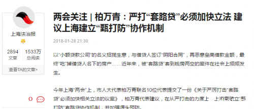 2018年初的上海“两会”上,柏万青作为市人大代表联合10名市人大代表提交了一份《关于严厉打击“套路贷”必须加快相关立法的议案》,建议在从严打击的力度上需建立“甄打防”套路贷协作机制,并加强源头预防。